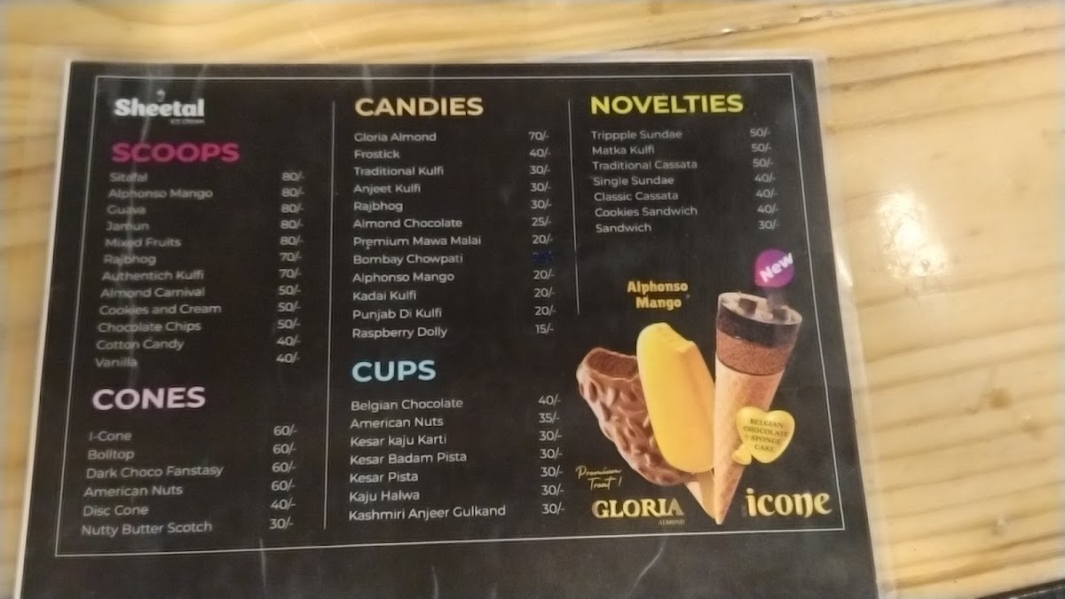 Step inside and let the vibrant atmosphere envelop you as you indulge in a symphony of flavors. Sheetal Garden Parlour is not just any café; it's a haven for those with a sweet tooth. The café specializes in a tantalizing selection of ice cream scoops, featuring unique flavors that will leave your taste buds dancing. From the creamy richness of Alphonso Mango to the refreshing Guava and the exotic allure of Rajbhog, each scoop promises a delightful experience. There's no shortage of options, with audacious flavors like Kesar Pista and the nutty crunch of Almond Carnival adding to the excitement. Not to mention, the comforting Cookies and Cream and classic Vanilla varieties ensure there's something for everyone.
