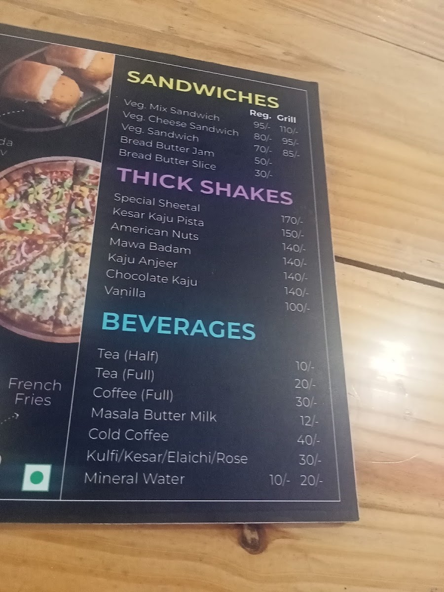 But the indulgence doesn't stop with ice cream alone. Complement your sweet treats with a diverse range of snacks, including the satisfying Veg. Cheese Sandwich and the classic Veg. Mix Sandwich. Whether you're in the mood for a quick bite after a leisurely stroll in the park or a relaxing afternoon of chit-chat over snacks and tea, Sheetal Garden Parlour provides the perfect backdrop.